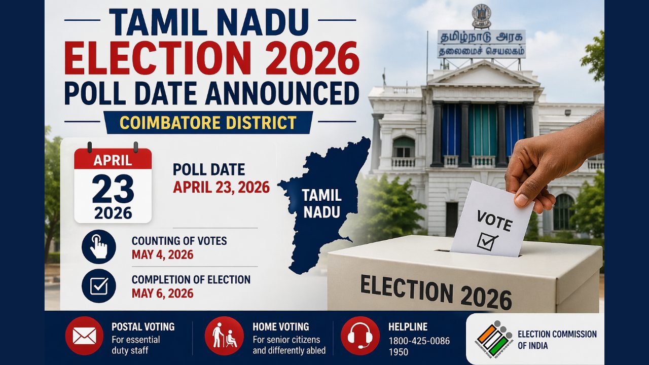 Chennai, April 23,2026: The when is tamil nadu election question has been officially answered with the poll date set for April 23, 2026. The announcement applies to Tamil Nadu, including constituencies in Coimbatore district.