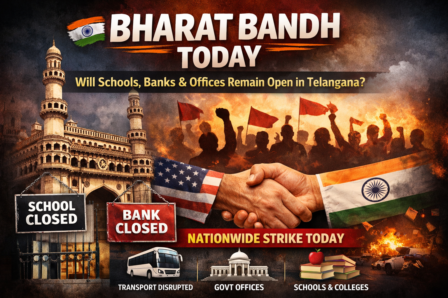 Home » Telangana » Bharat Bandh Today: Will Schools, Banks and Offices Remain Open in Telangana?