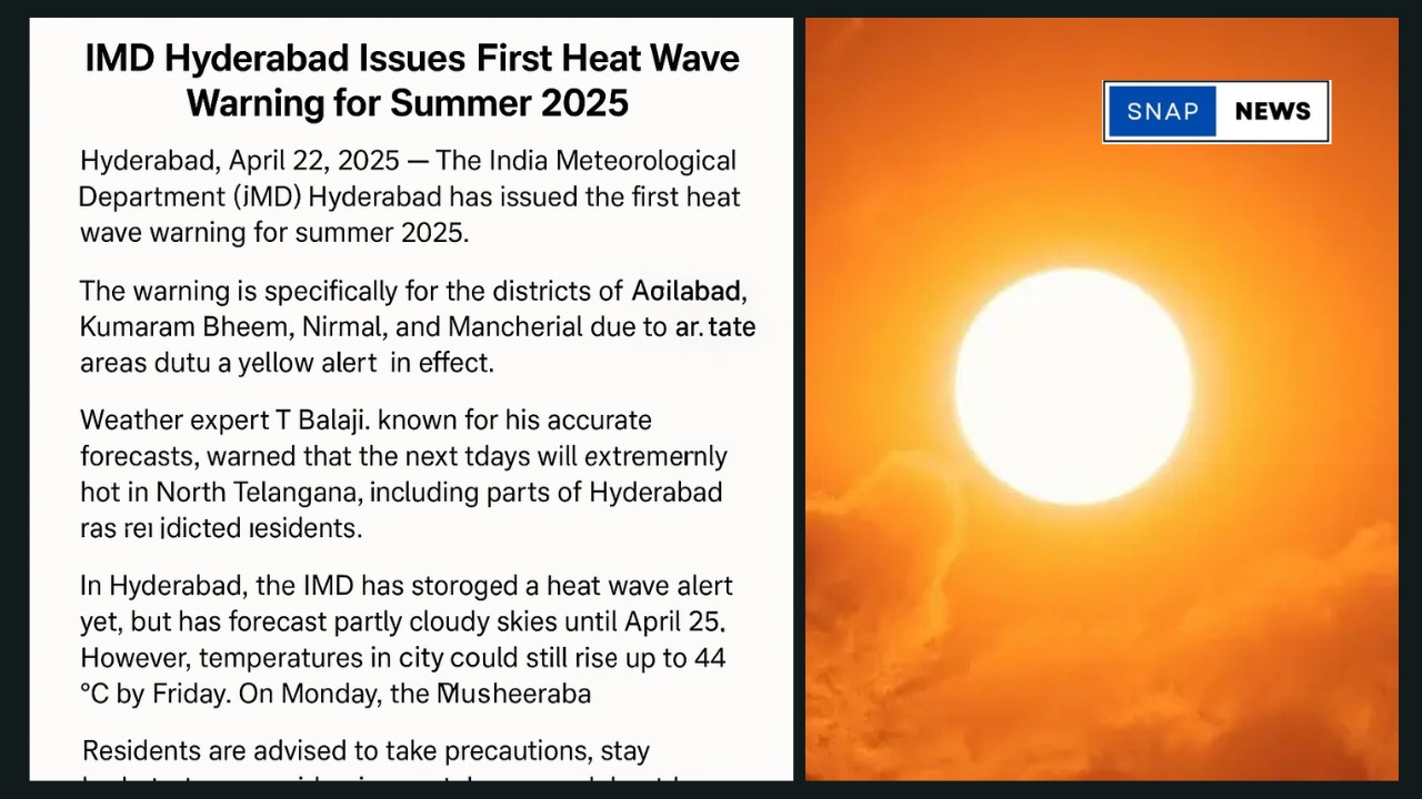 Hyderabad, April 22, 2025 : The India Meteorological Department (IMD) Hyderabad has issued the first heat wave warning for summer 2025.