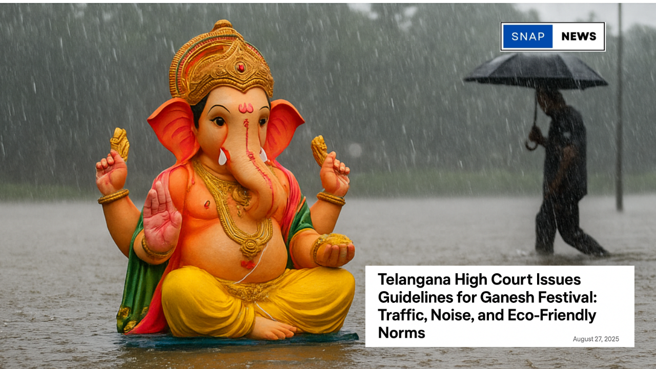 Hyderabad, Aug 27, 2025: The Telangana High Court has issued fresh guidelines for the upcoming Ganesh festival to ensure smooth celebrations, public safety, and environmental protection. The directions came while hearing a plea against the unauthorised installation of a Ganesh pandal in Hyderabad.