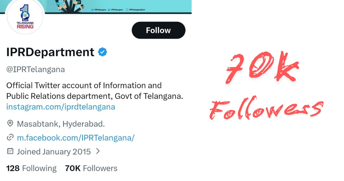 - Telangana I&PR X handle crosses 70,000 followers