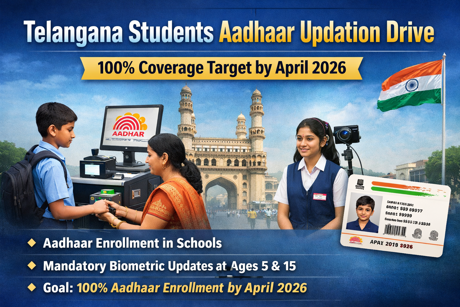 - Special Aadhaar updation drive for students across Telangana